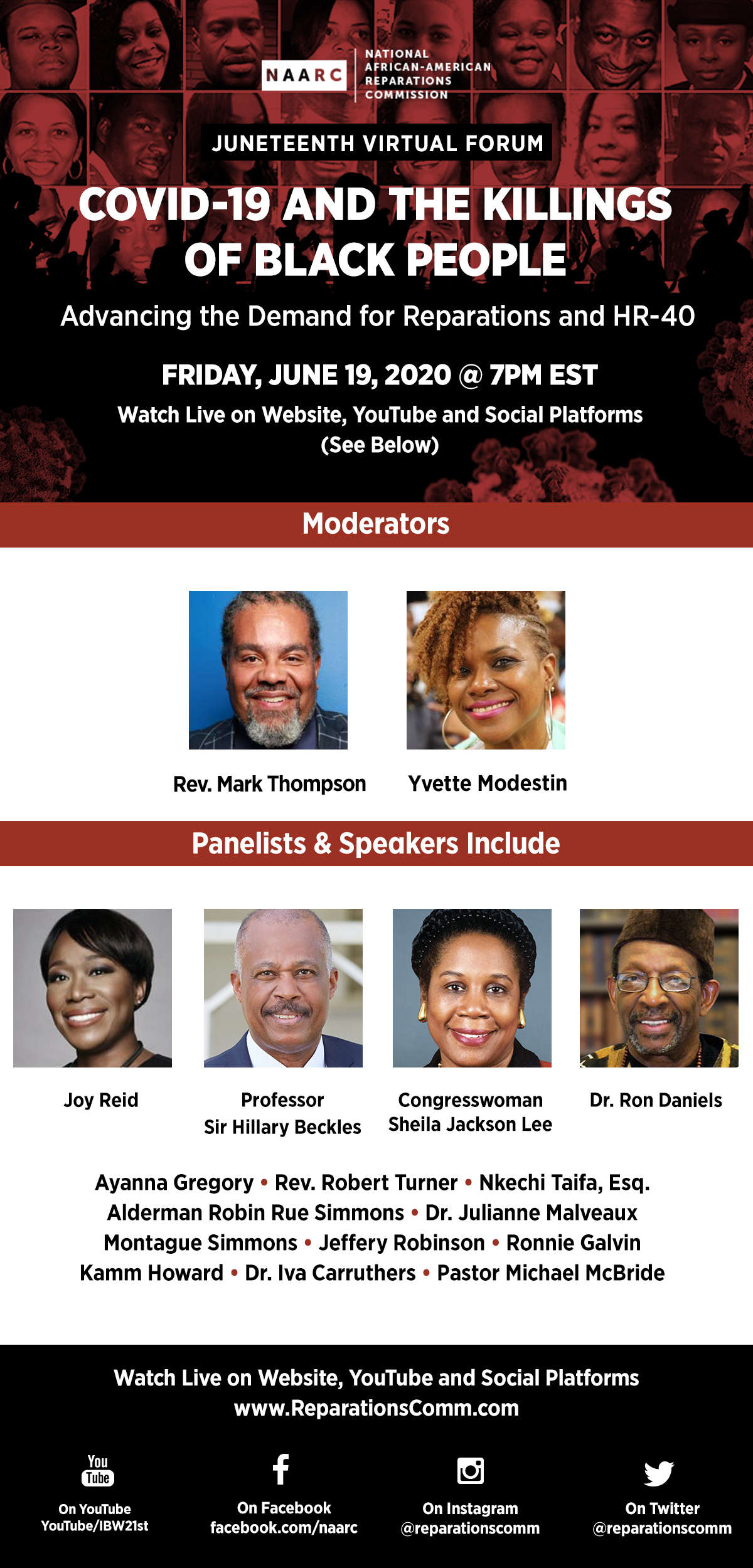 Flyer: Juneteenth Forum to Address COVID-19, Killing of Black People, Reparations and HR-40 — 1200×2500