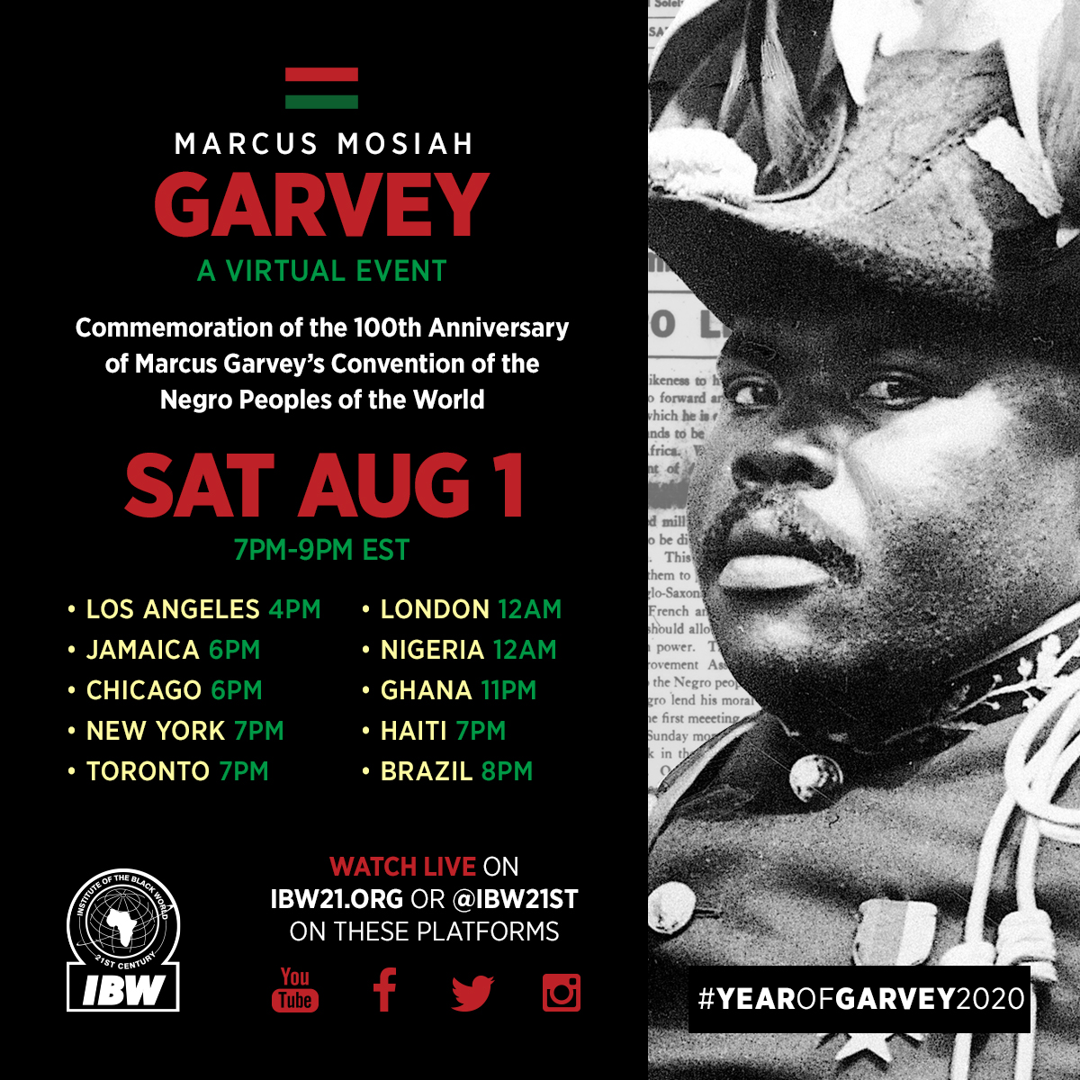 Marcus Mosiah Garvey, A Virtual Event. August 1, 2020, 7PM – 9PM EST